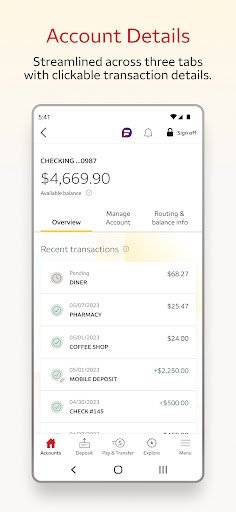 - Mobile Deposit: Deposit checks directly by taking photos with your device's camera.